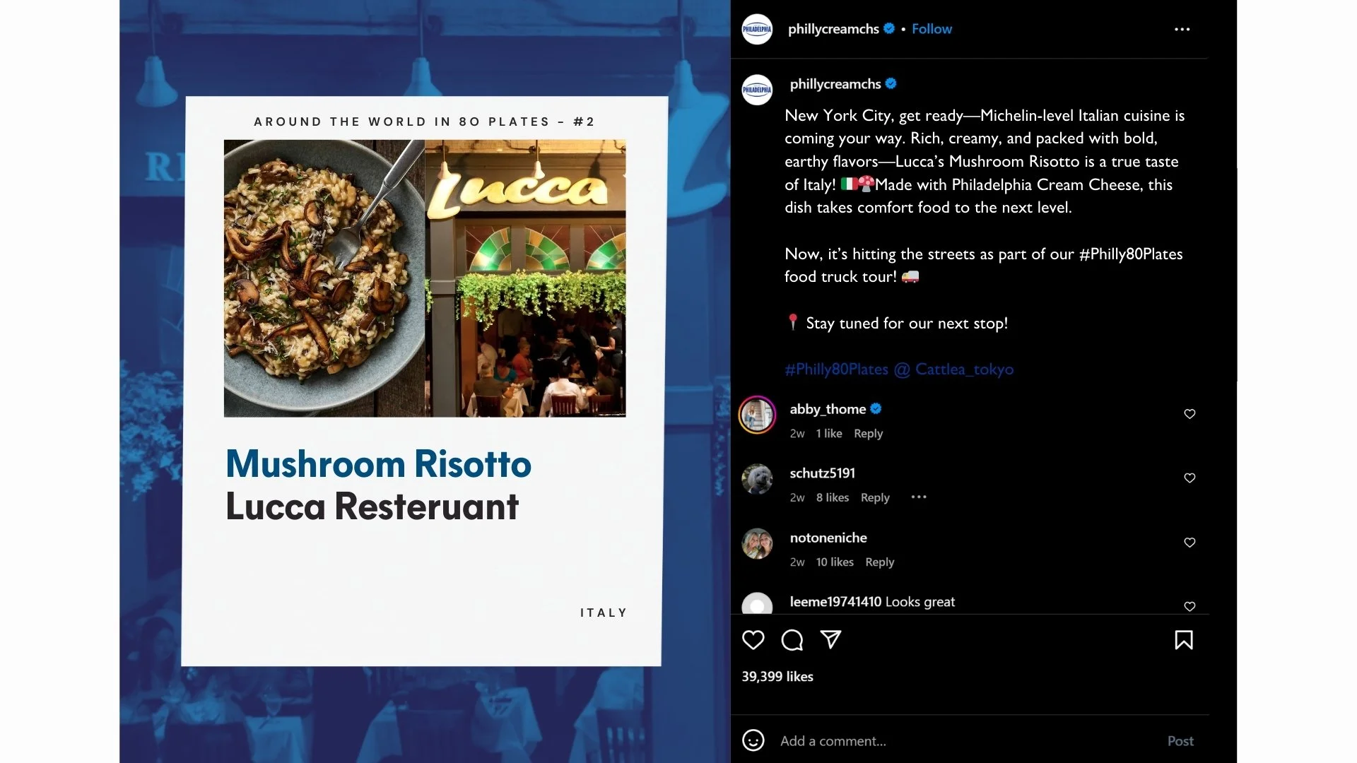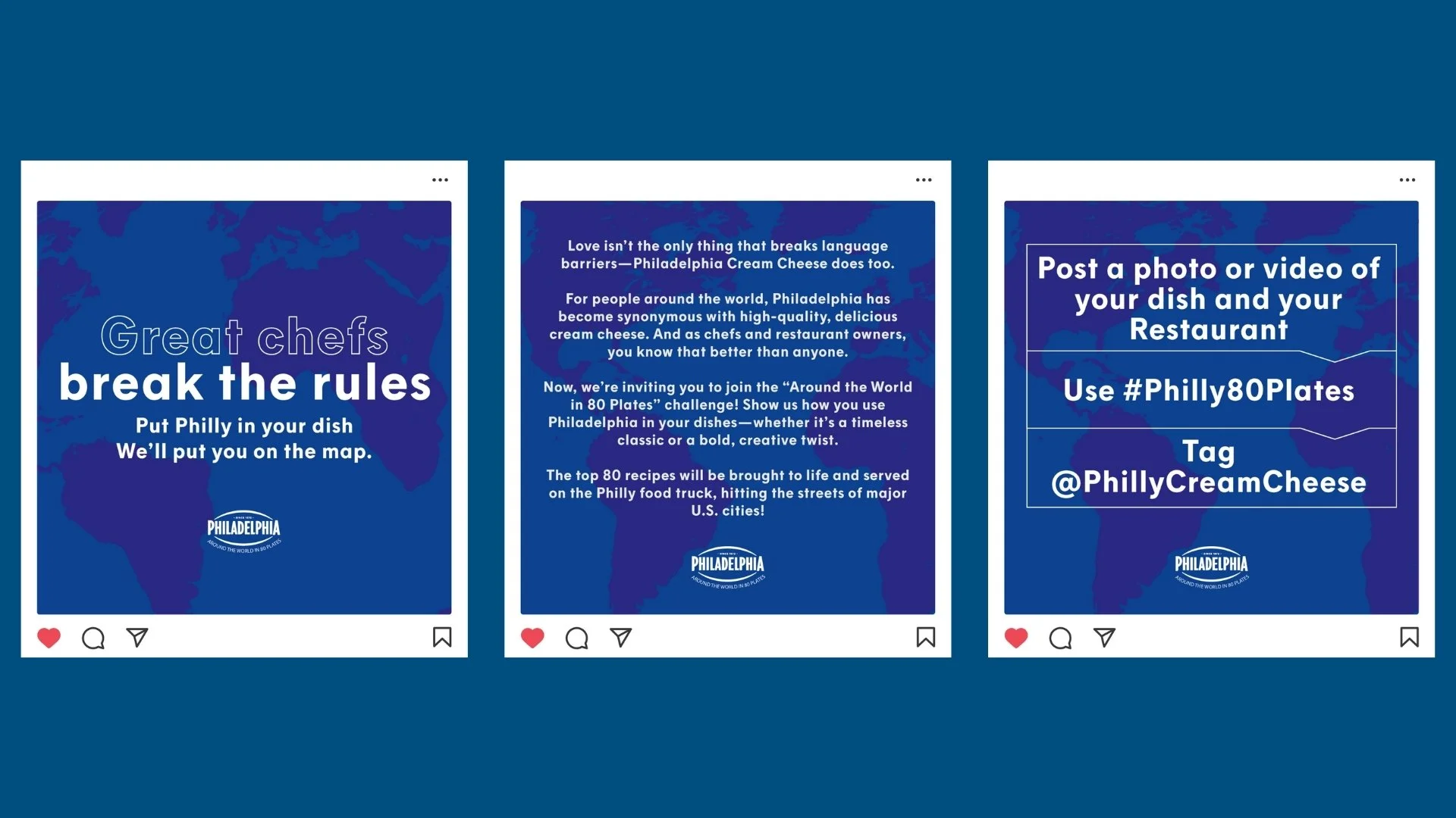 Target restaurant owners by positioning Philadelphia cream cheese as the irreplaceable and most versatile ingredient for restaurant owners to make authentic food from across the world. We will accomplish this through OOH, video, social and experiential executions.